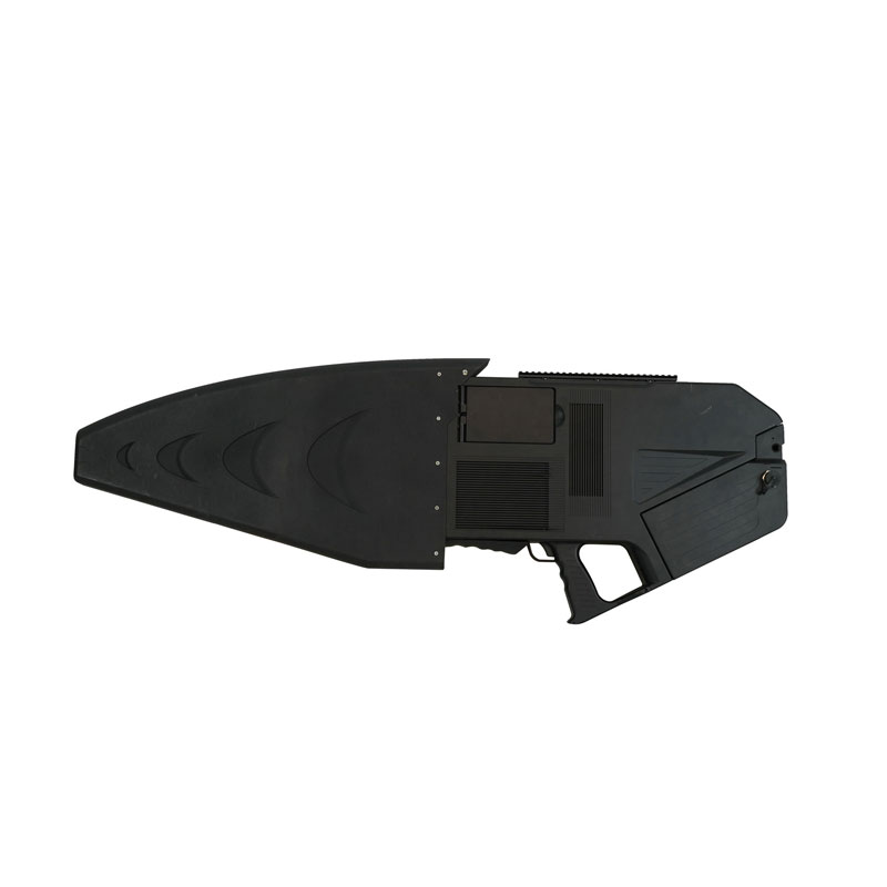 Przenośny pistolet przeciw dronom jest obecnie sprzeczny z powszechnym użyciem UAV. Wyłącza docelowy UAV poprzez zakłócanie sygnału 300 MHz ~ 6 GHz, aby zmusić UAV do upadku lub powrotu. Odległość zagłuszania sięga ponad 800 metrów.