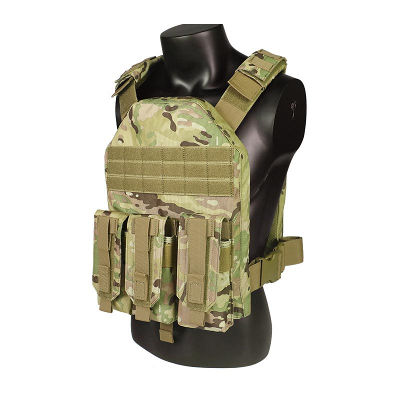 Przedni panel z potrójnymi klipsami może pomieścić trzy klipsy 9 mm i klipsy 7,62 mm. Kamizelka nadaje się do tablic wtykowych 25*30cm.